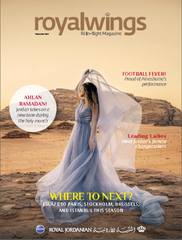 لا تقتصر "مجلة رويال وينجز" (Royal Wings)، التي توزع مجانًا خلال رحلات الملكية الأردنية، على تقديم باقة ممتعة من الموضوعات الدولية والمحلية لقرائها من المسافرين، وإنما تقدم لهم مقالات متنوعة عن المعالم السياحية الأردنية وثقافة الشعب الأردني بالإضافة إلى مقالات عن نماذج من شخصيات هذا المجتمع ودليل شامل لمسارات الخطوط الجوية الأردنية والتسهيلات المقدمة.